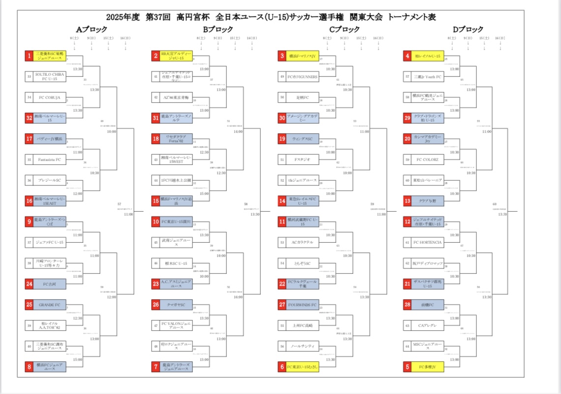 高円宮杯 JFA 第37回全日本U-15サッカー選手権大会 関東大会の組合せが決まりました。