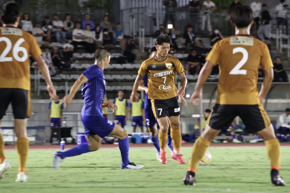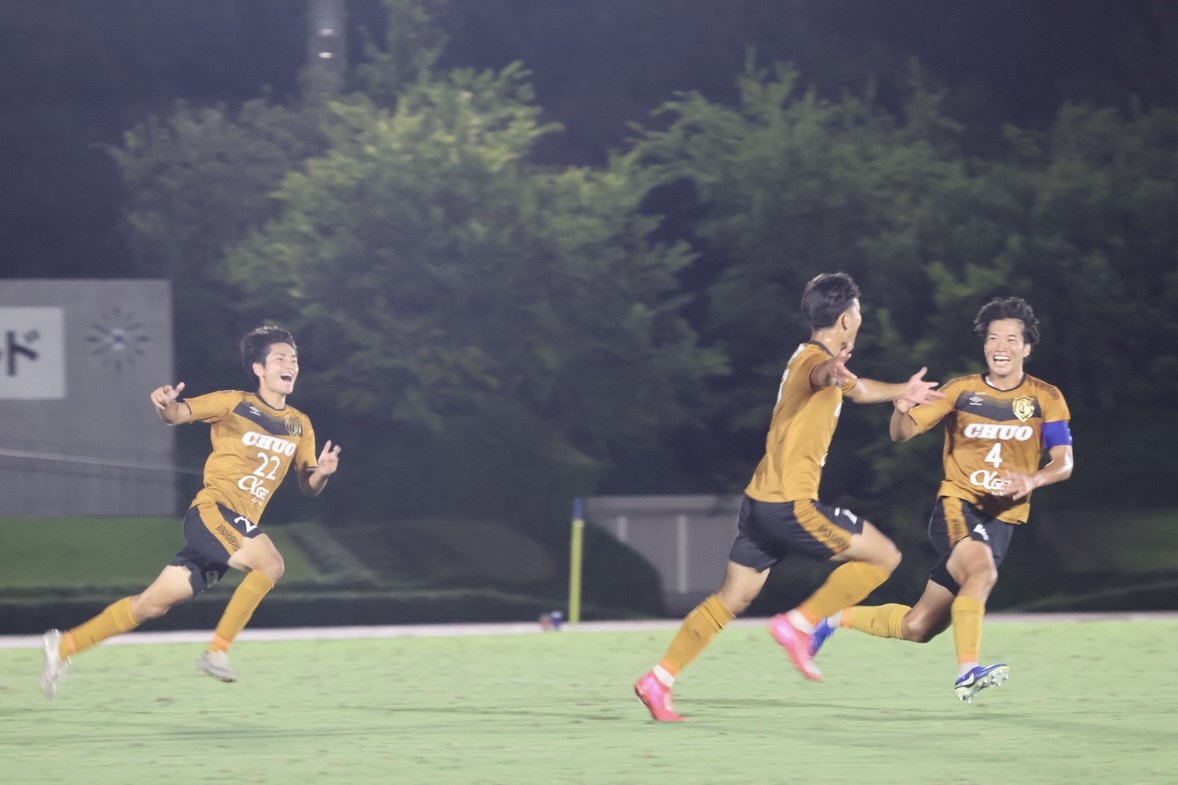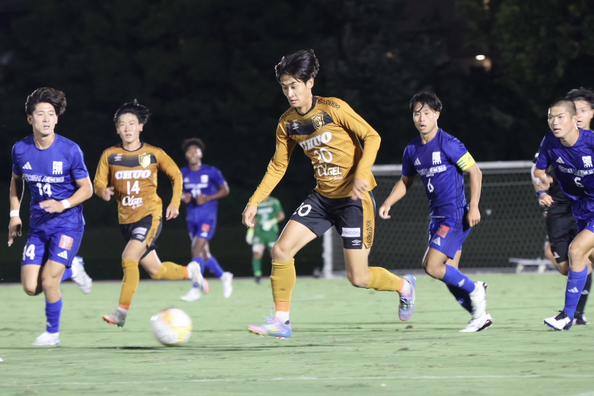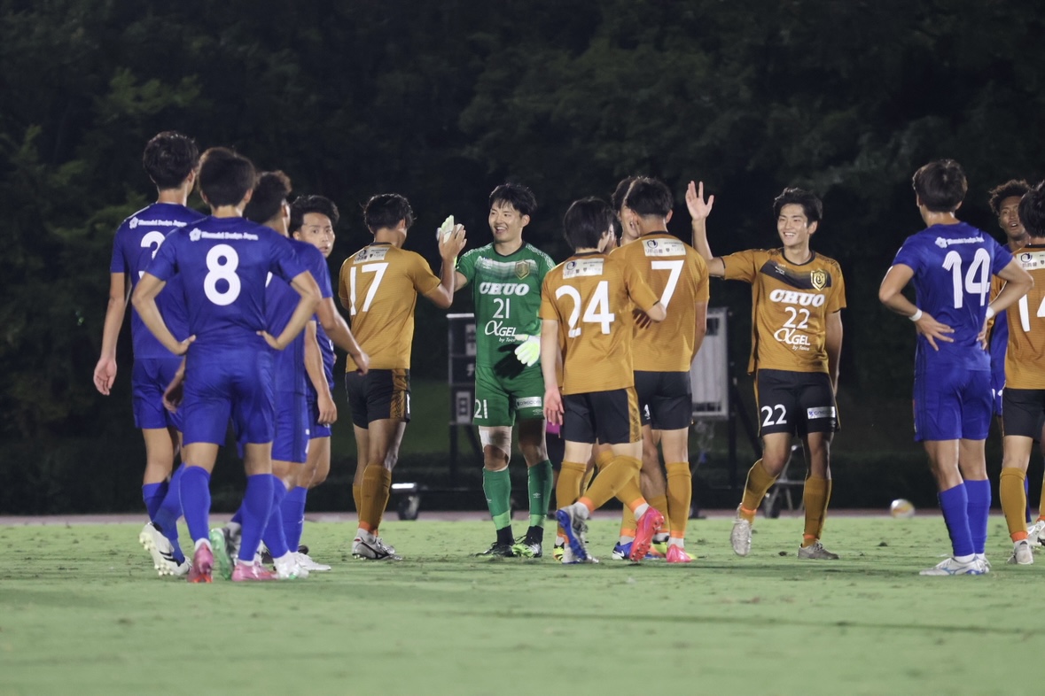 〇スタメン![]() 〇戦評<試合開始>前半42分:選手交代 持山out新in<前半終了>中央大学 0-0 日本体育大学<後半開始>後半10分:CKのこぼれ球を尾川がミドルシュートを放つもバーに嫌われる後半12分:自陣右サイドからミドルシュートを放たれるもポストに救われる 後半18分:自陣右サイドからのFKで直接狙われるも、GK近野のセーブでピンチを防ぐ 後半22分:左サイド武本のクロスから新が飛び込むも、合わせられず 後半31分:ペナルティエリア内でピンチを迎えるも、鷹取のシュートブロックでピンチを凌ぐ 後半32分:選手交代 田中out淵上in、遠山out北浜in 後半41分:カウンターから北浜がシュートを放つも相手のビックセーブに合う 後半45分:ペナルティエリア内に侵入した尾川のクロスに味方が飛び込むも、ゴール左に外れる 後半45+3分:得点 右サイド抜け出した淵上からのパスに北浜が反応し、シュートを放ち先制 後半45+4分:選手交代 武本out横山in <試合終了>中央大学 1-0 日本体育大学〇監督・選手振り返り宮沢正史「リーグ後半戦初戦の日体大学との試合は、攻守において全員のハードワークが最後まで素晴らしく、チーム一丸で大きな意味のある勝利を掴むことが出来ました。相手のロングボールに対しても熱く冷静に粘り強く対応して守り、中大らしい良い攻撃でチャンスを多く作り、途中出場の選手たちが躍動し決勝ゴールを奪った瞬間は忘れられない瞬間になりました。 この結果に一喜一憂することなく、次の試合もとても大事な試合です。 慶應義塾大学との試合に向けて対策と最善の準備をしたいと思います。 引き続きご声援よろしくお願いします。」 近野勝大「後期開幕戦を勝利で飾ることができて、嬉しく思います。今日の勝利を次節に繋げられるように、良い準備をしていきたいと思います。応援ありがとうございました。」〇マッチフォト |
