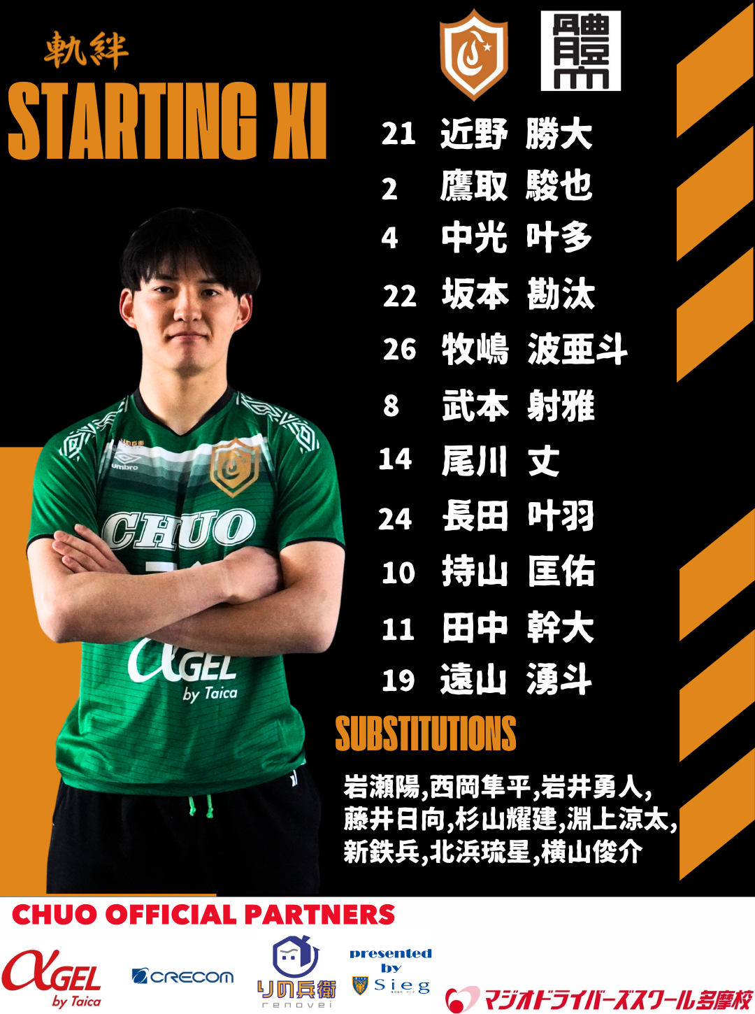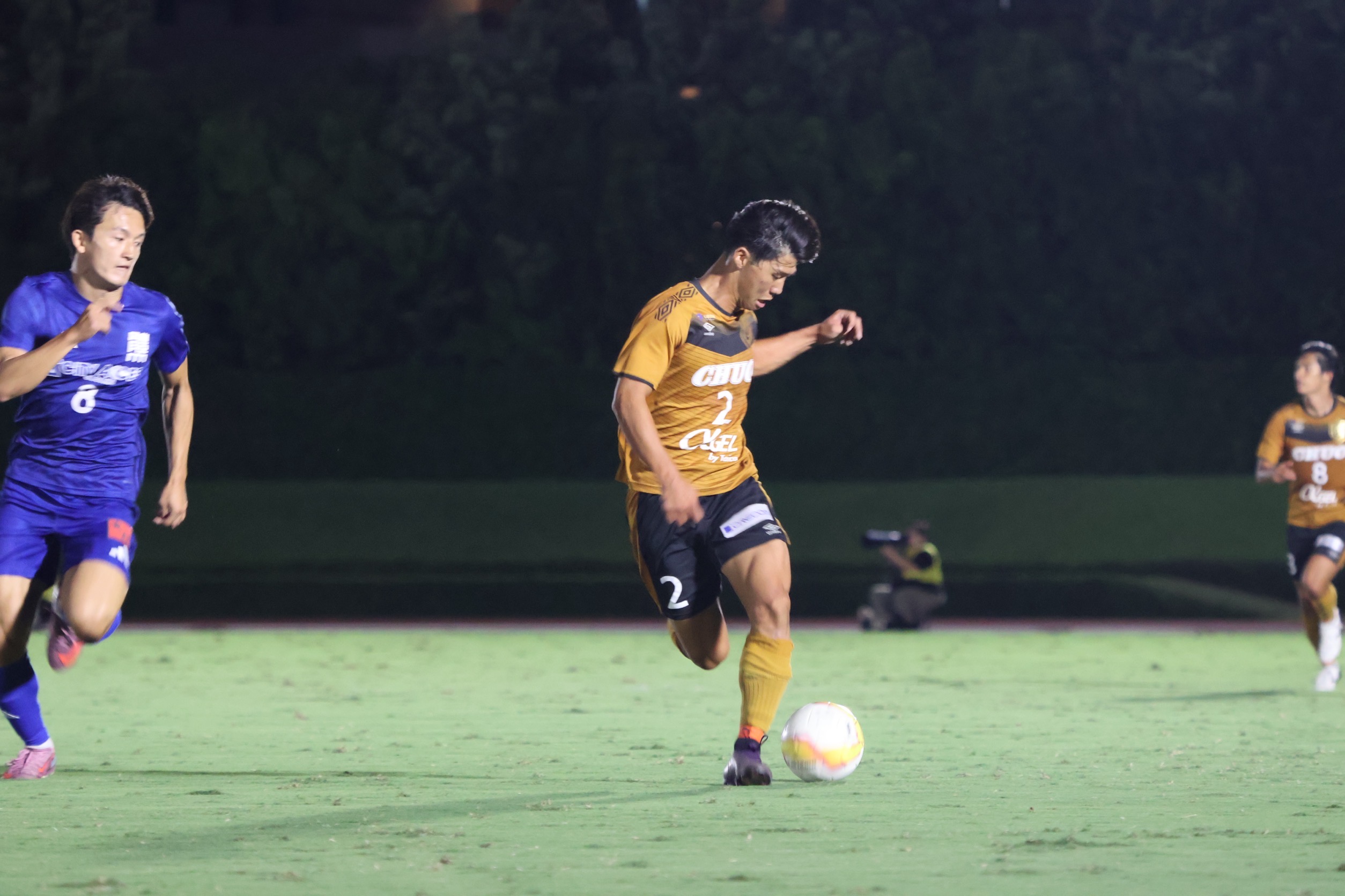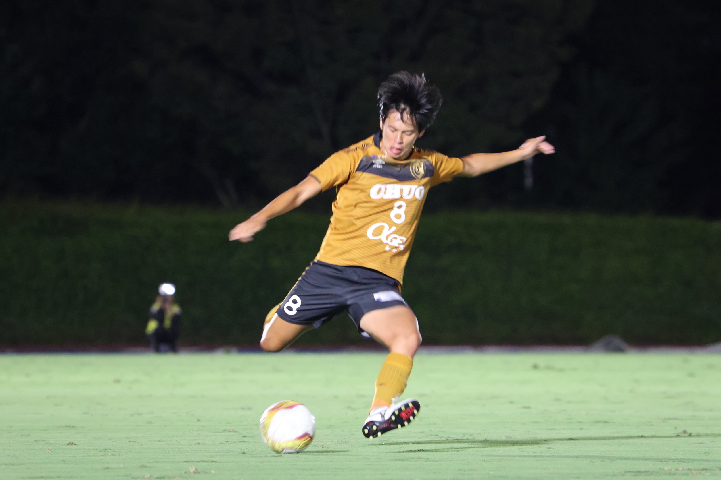 〇スタメン![]() 〇戦評<試合開始>前半42分:選手交代 持山out新in<前半終了>中央大学 0-0 日本体育大学<後半開始>後半10分:CKのこぼれ球を尾川がミドルシュートを放つもバーに嫌われる後半12分:自陣右サイドからミドルシュートを放たれるもポストに救われる 後半18分:自陣右サイドからのFKで直接狙われるも、GK近野のセーブでピンチを防ぐ 後半22分:左サイド武本のクロスから新が飛び込むも、合わせられず 後半31分:ペナルティエリア内でピンチを迎えるも、鷹取のシュートブロックでピンチを凌ぐ 後半32分:選手交代 田中out淵上in、遠山out北浜in 後半41分:カウンターから北浜がシュートを放つも相手のビックセーブに合う 後半45分:ペナルティエリア内に侵入した尾川のクロスに味方が飛び込むも、ゴール左に外れる 後半45+3分:得点 右サイド抜け出した淵上からのパスに北浜が反応し、シュートを放ち先制 後半45+4分:選手交代 武本out横山in <試合終了>中央大学 1-0 日本体育大学〇監督・選手振り返り宮沢正史「リーグ後半戦初戦の日体大学との試合は、攻守において全員のハードワークが最後まで素晴らしく、チーム一丸で大きな意味のある勝利を掴むことが出来ました。相手のロングボールに対しても熱く冷静に粘り強く対応して守り、中大らしい良い攻撃でチャンスを多く作り、途中出場の選手たちが躍動し決勝ゴールを奪った瞬間は忘れられない瞬間になりました。 この結果に一喜一憂することなく、次の試合もとても大事な試合です。 慶應義塾大学との試合に向けて対策と最善の準備をしたいと思います。 引き続きご声援よろしくお願いします。」 近野勝大「後期開幕戦を勝利で飾ることができて、嬉しく思います。今日の勝利を次節に繋げられるように、良い準備をしていきたいと思います。応援ありがとうございました。」〇マッチフォト |