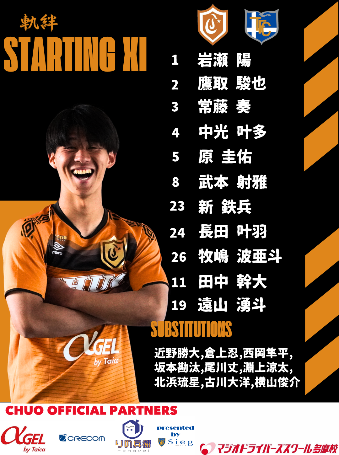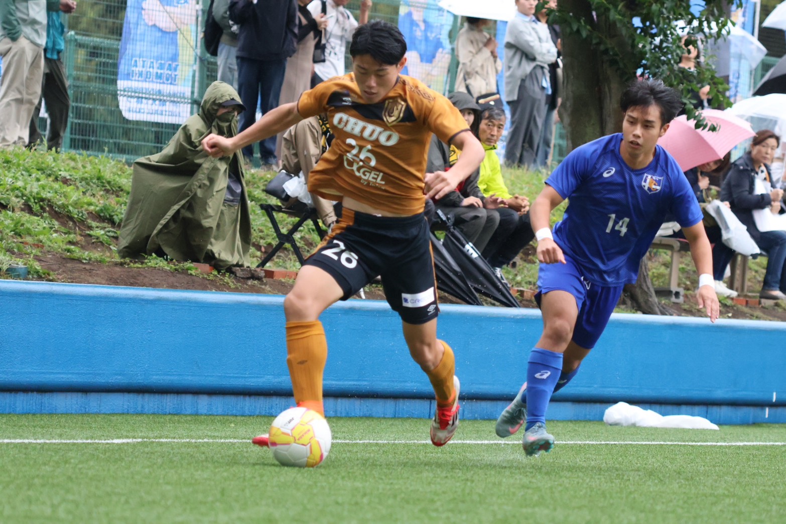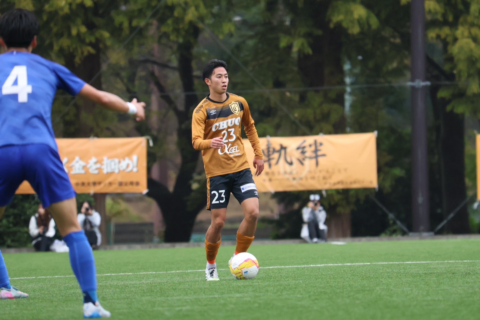 〇スタメン![]() 〇戦評<試合開始>前半15分:中央突破から田中がシュートを放つも、ゴール左に外れる前半22分:ペナルティエリア内からシュートを放たれるも、岩瀬のストップでピンチを凌ぐ 前半29分:ckのこぼれ球から、武本がシュートを放つもゴール上に外れる 前半45分:ロングスローのこぼれ球からクロスを上げられ、ゴール正面で合わせられるも、ゴール右に外れる <前半終了>中央大学 0-0 東海大学<後半開始>後半1分:選手交代 新out.古川in後半9分:ckのこぼれ球を長田がシュートを放つも、キーパーに阻まれる 後半10分:失点 右サイドからのクロスを合わせられ失点 後半15分:選手交代 鷹取、遠山 out,尾川、倉上 in 後半20分:選手交代 田中out横山in 後半25分:選手交代 武本out北浜in 後半28分:得点 ゴール正面からの武本のシュートのこぼれ球を尾川が詰めて同点 後半31分:失点 左サイドからのカットインクロスを合わせられて失点 後半47分:武本のクロスに倉上が飛び込むも、ゴール左に外れる <試合終了>中央大学 1-2 東海大学〇監督・選手振り返り宮沢正史「」原圭佑「今節は残留を争う東海大学との6ポイントゲームでしたが、後半に2失点してしまい敗戦してしまいました。1部残留をするために何が必要なのかをチームとしてはもちろんのこと、選手1人1人が日々考えて行動していく必要があると思います。 この現状をなんとしても変えるために、より一層の強い意志と覚悟を持って来週から取り組み、次節の日本大学戦では中大ファミリーが一体となって勝利を掴み取りたいと思います。」 〇マッチフォト |