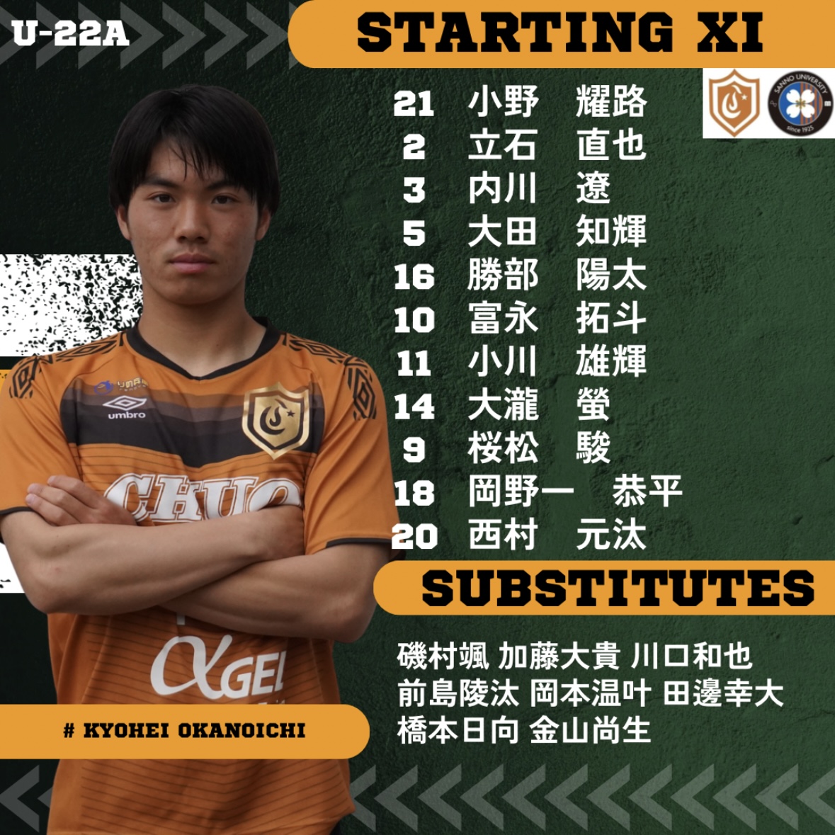 後半17分 :選手交代 富永、桜松out,田邊、岡本in