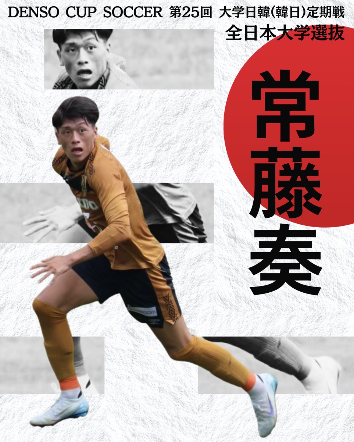 常藤奏(新4年/興國高)、北浜琉星(新4年/福岡U-18)『DENSO CUP SOCCER 第25回大学日韓(韓日)定期戦』全日本大学選抜メンバー選出のお知らせ