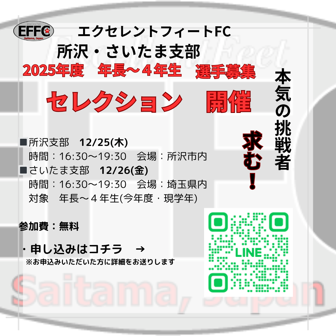 弊社が運営する「エクセレントフィートFC」のセレクションの案内です。