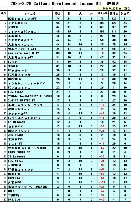 Saitama Development League U-10リーグ戦概要(2025ー 2026 シーズン)