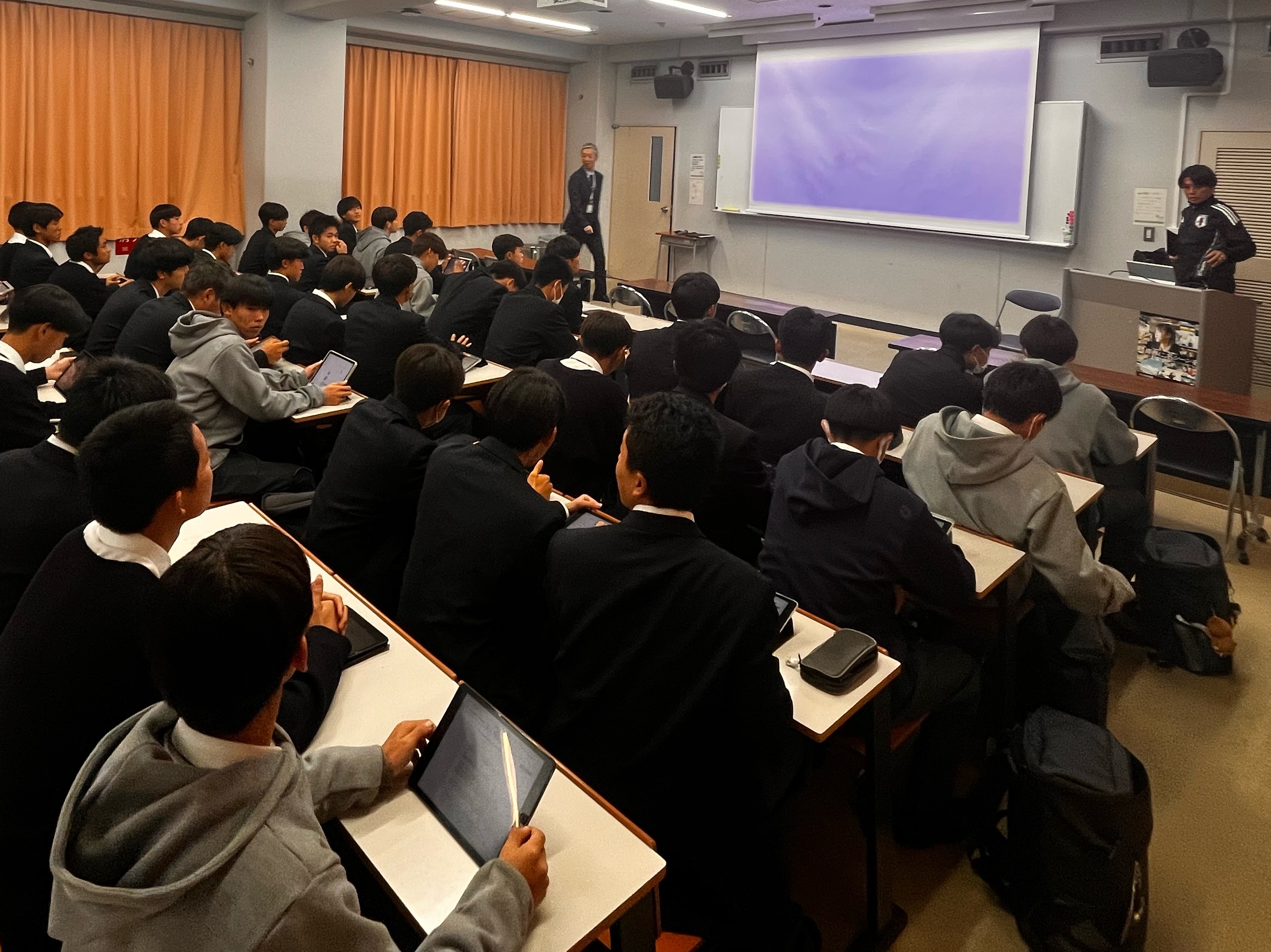 日本サッカー協会(JFA)の 本間一憲 様 をお招きし、サッカー部特別講演を実施していただきました。サッカー日本代表 "SAMURAI BLUE" のチームマネージャーとしてのご経験やトップ選手の様子、広義でのサッカーに関わることの意味など、非常に貴重なお話をしてくださりました。
