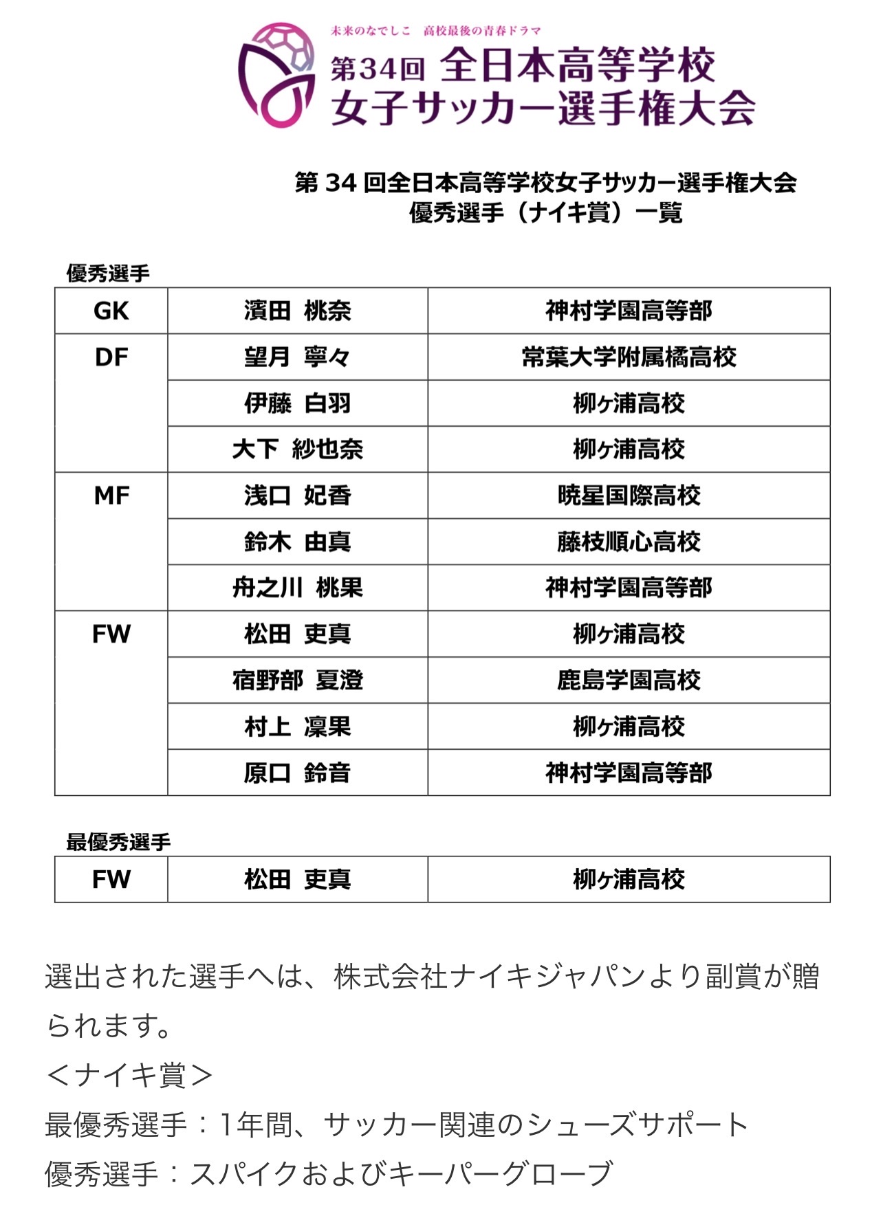 第34回全日本高等学校女子サッカー選手権大会の優秀選手に宿野部夏澄選手が選ばれました‼️