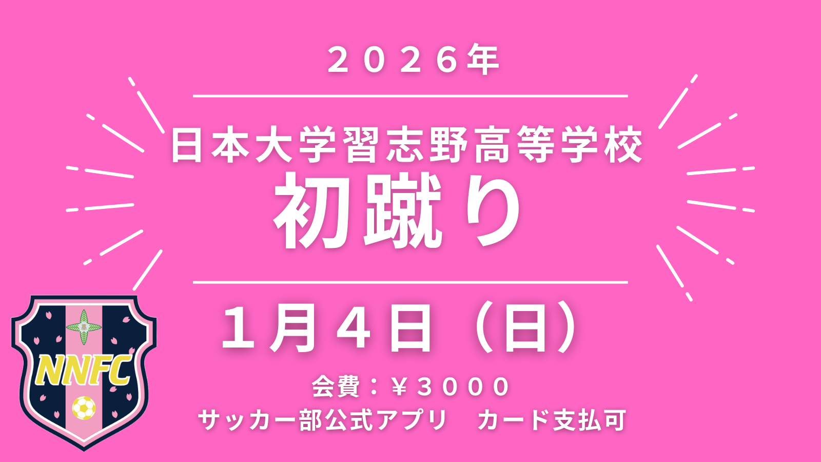 2026年日大習志野高校サッカー部初蹴り開催につきまして以下、ご案内させていただきます。