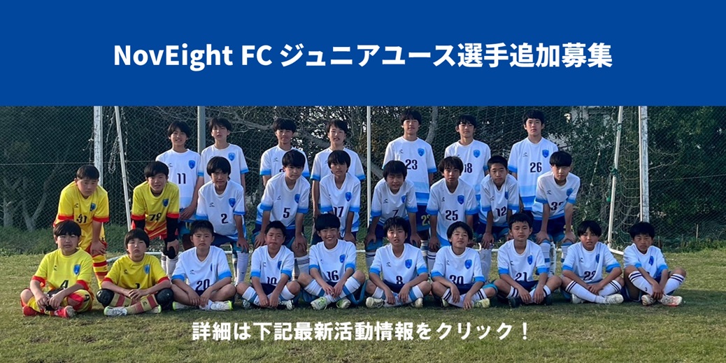千葉県浦安市・市川市で活動している、NovEight FC(ノーヴェイトフットボールクラブ)ジュニアユースサッカークラブです。ジュニアチーム・サッカースクールも行っております。Jリーグ経験者、元ビーチサッカー日本代表が指導を行っております。 体験参加などお気軽にお問い合わせをいただければと思います。