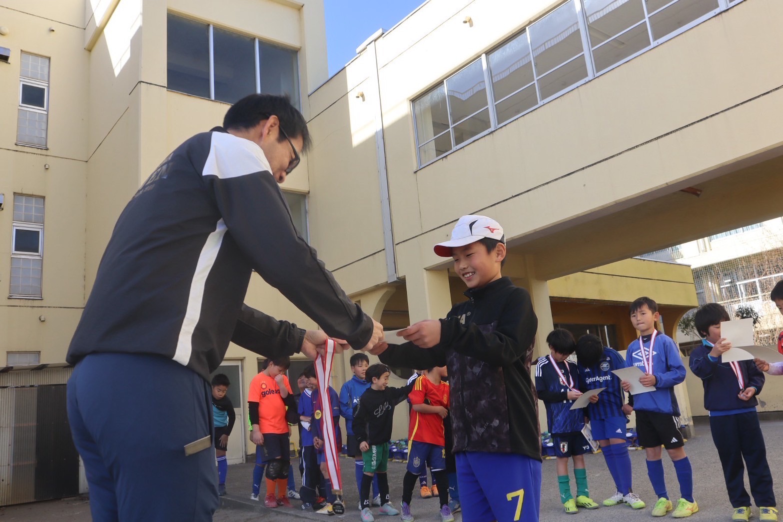 1月11日の48期3年生、MFA3年生リーグ準優勝とトーマス交流会中央大会進出をお祝いしてホームグランドで表彰式を行いました。今持てる力を発揮して頑張った選手一人一人にはコーチから銀メダルが贈られました。練習大好き試合も大好き48期3年生、「より楽しく、より好きに」今年も更に上を目指して頑張りましょう!!