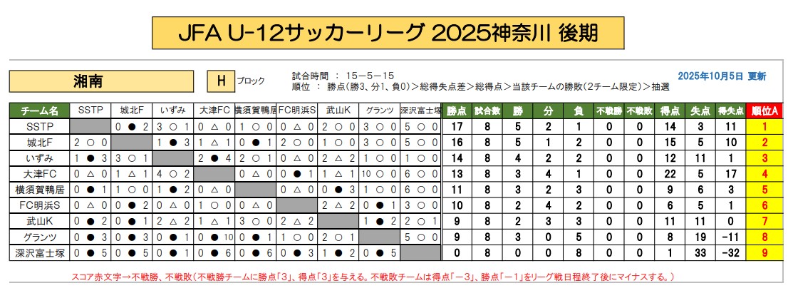 神奈川県U12サッカーリーグ 湘南地区 3部後期リーグ