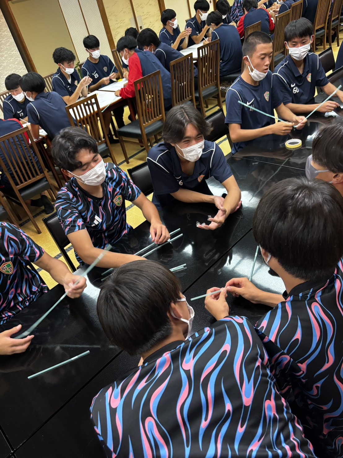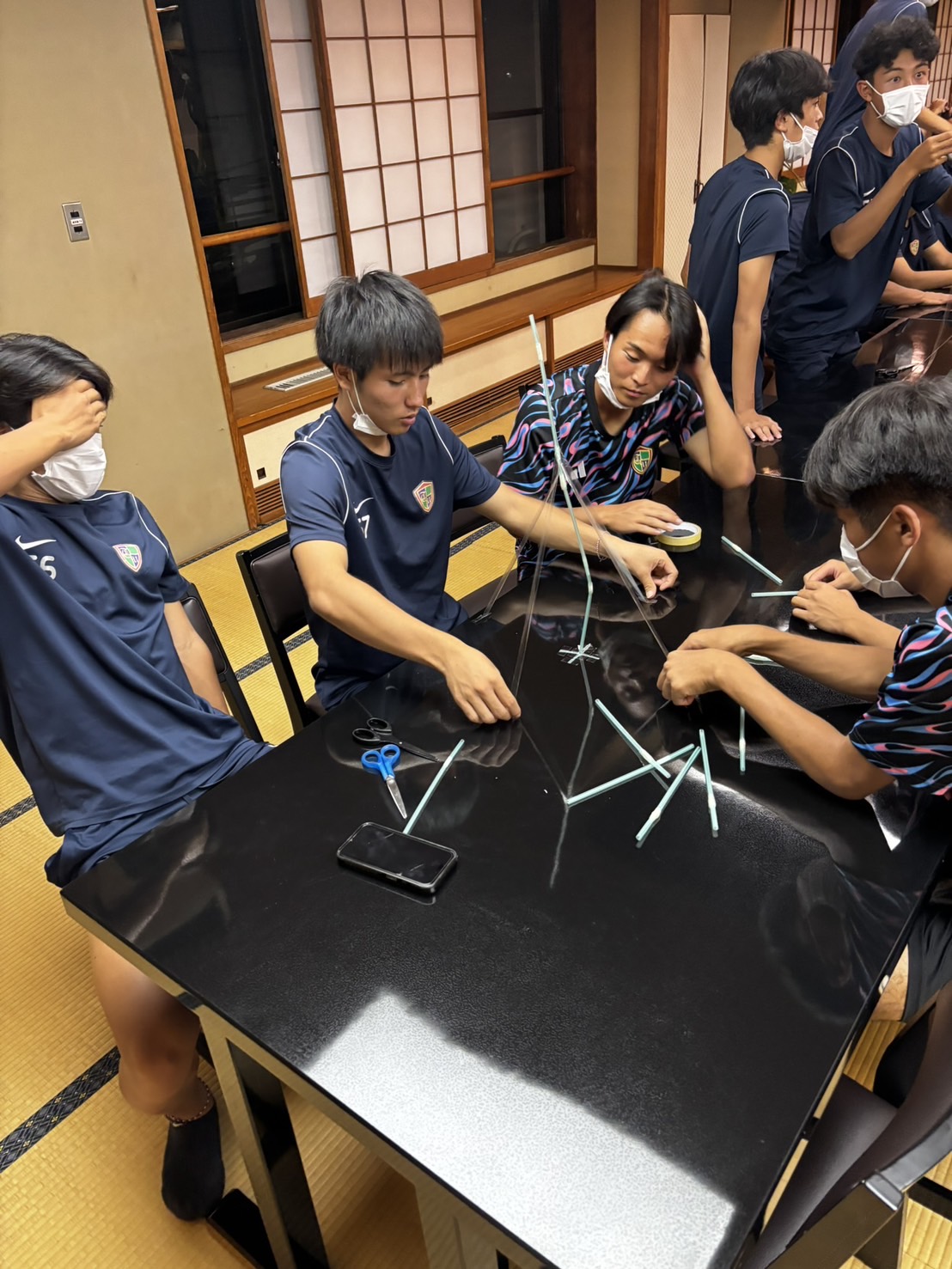 夜には企画部の1年生が考えてくれたレクリエーション「ストロータワー」を行い、全学年の絆をより一層深めることができました。