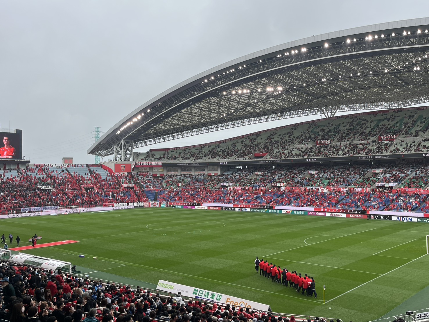 令和7年10月25日(土)Jリーグ、浦和レッズvs町田ゼルビアのkickoff前セレモニーで南高サッカー部員がセンターサークルシート役員を行いました。その後、試合観戦しました。